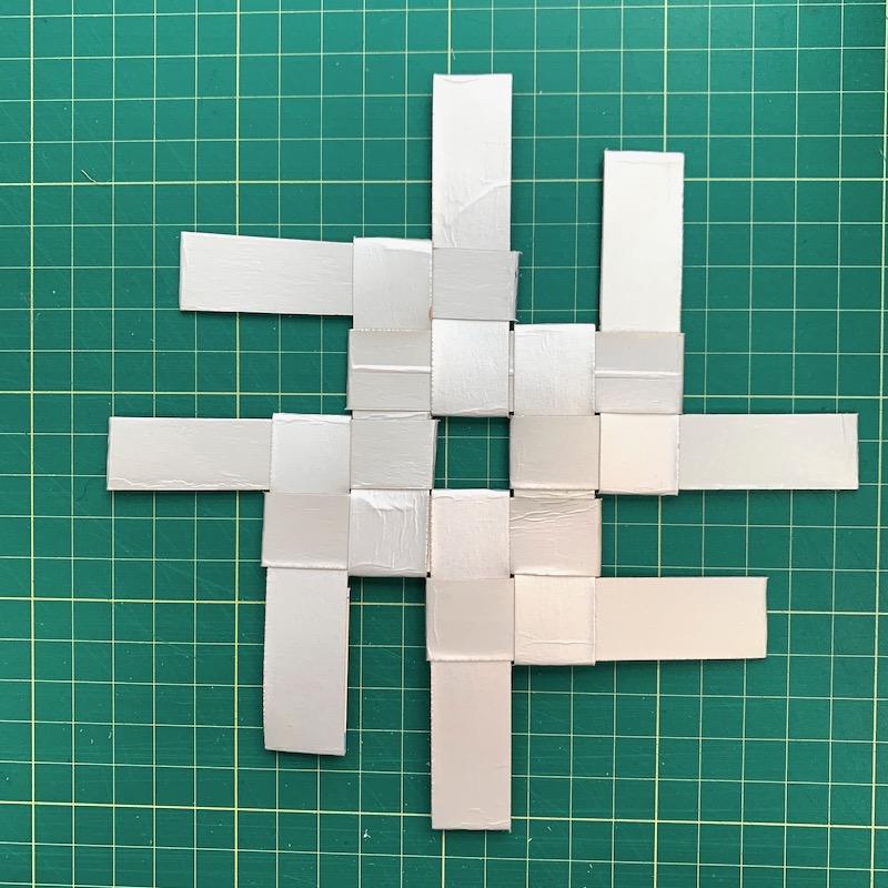 Windmill loop weave, four units.